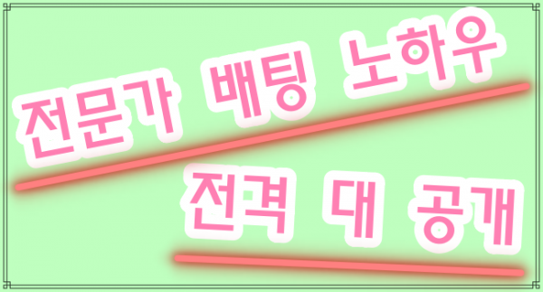 스포츠토토에서 가장 중요한 배팅법은 배터들만의 분석과 노하우가 있습니다. 여러 가지의 방법이 있겠지만 꽁의민족에서 채택한 가장 베스트의 노하우를 공개하려고합니다. 여기에서 주의 해야할 점은 무조건 똑같이 따라해서 수익을 내려고하면 안되고 실제 배팅 하시는 분들의 세밀한 분석과 과감한 결정력이 높은 수익으로 이어질것임을 강조드립니다.